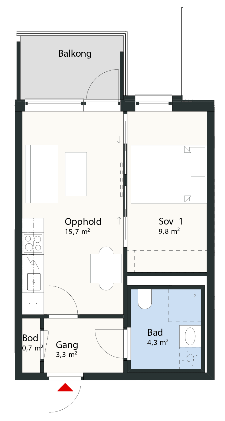 Student, førstegangskjøper, pendler - eller trenger du rett og slett ikke mer plass? Da er dette leiligheten for deg. Smart, arealeffektiv soveromsløsning med to dører, delikat bad og akkurat stort nok kjøkken. Balkongen ligger i forlengelse av stuen. Det er bare å nyte!
