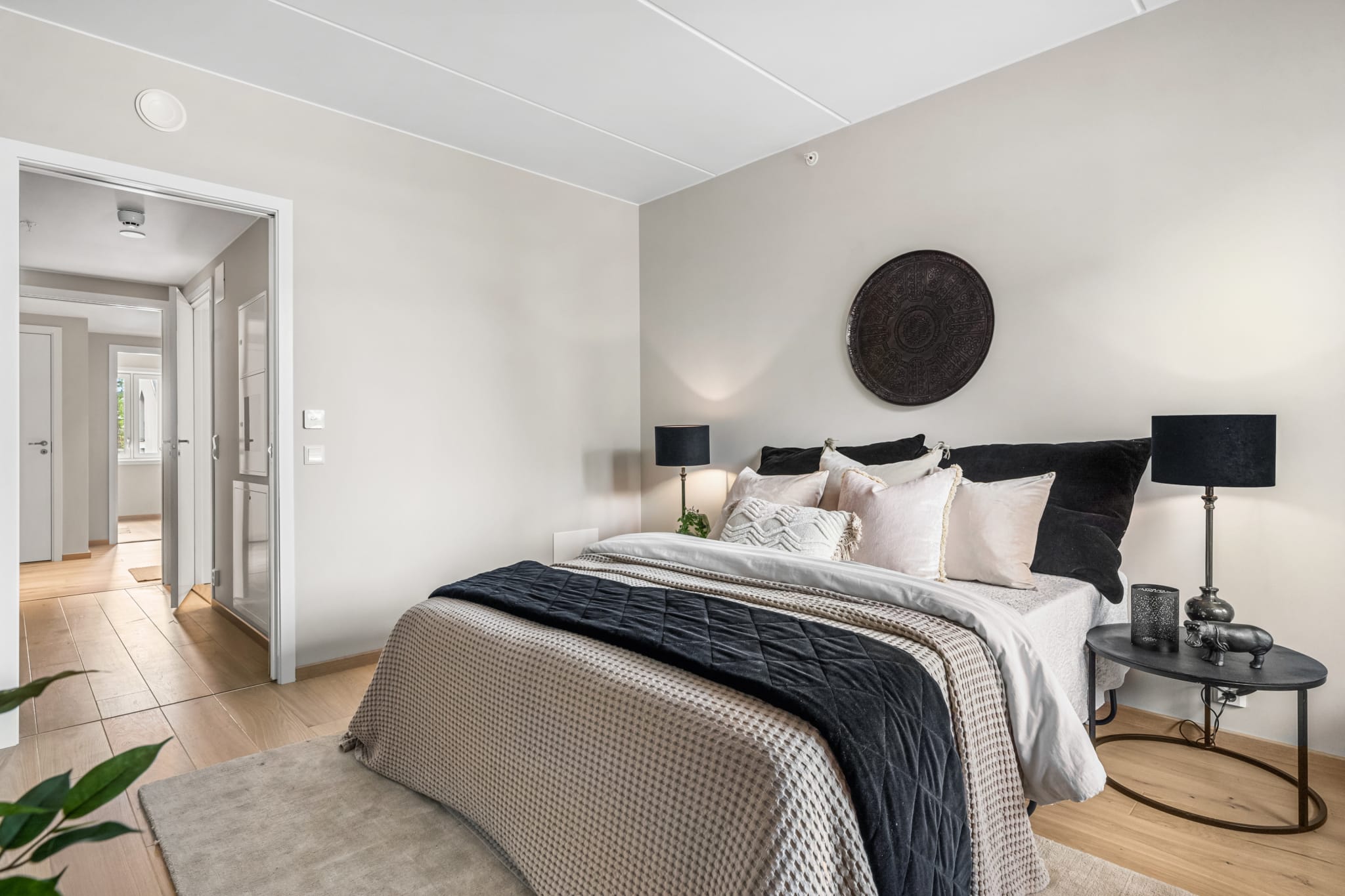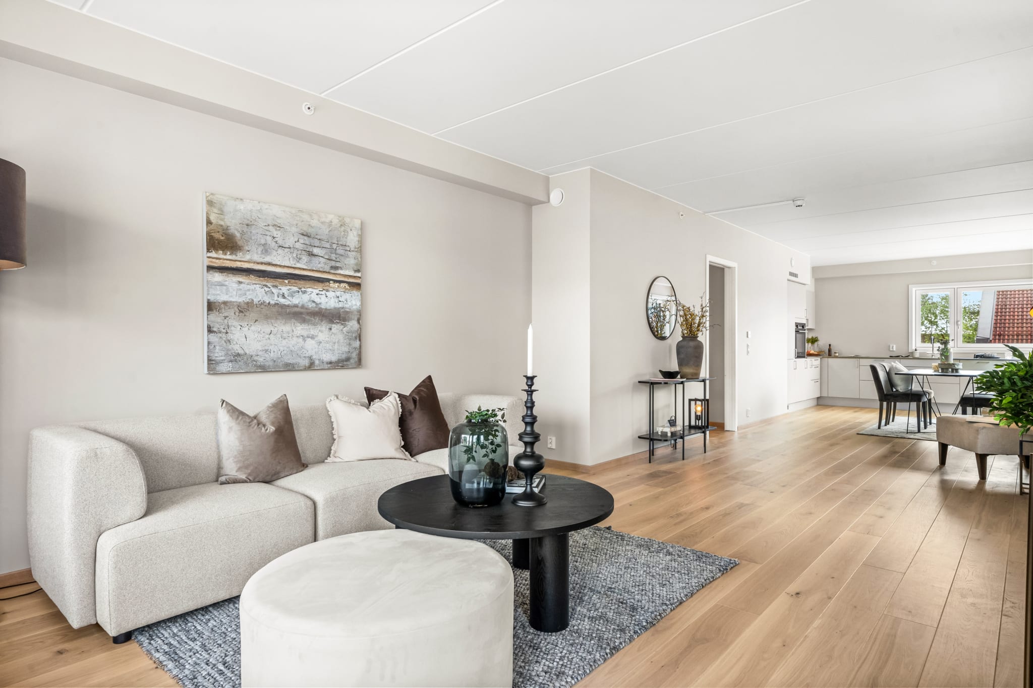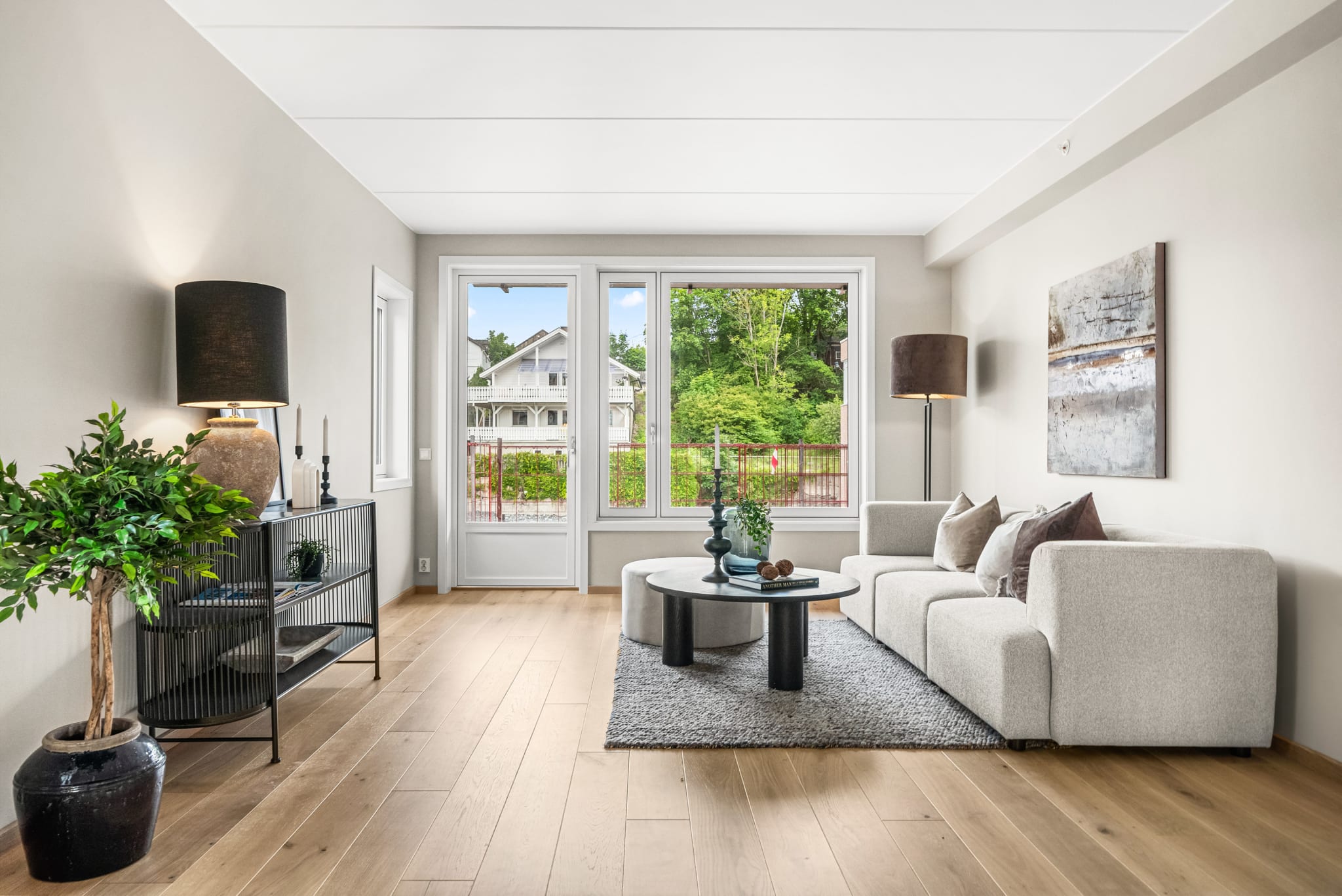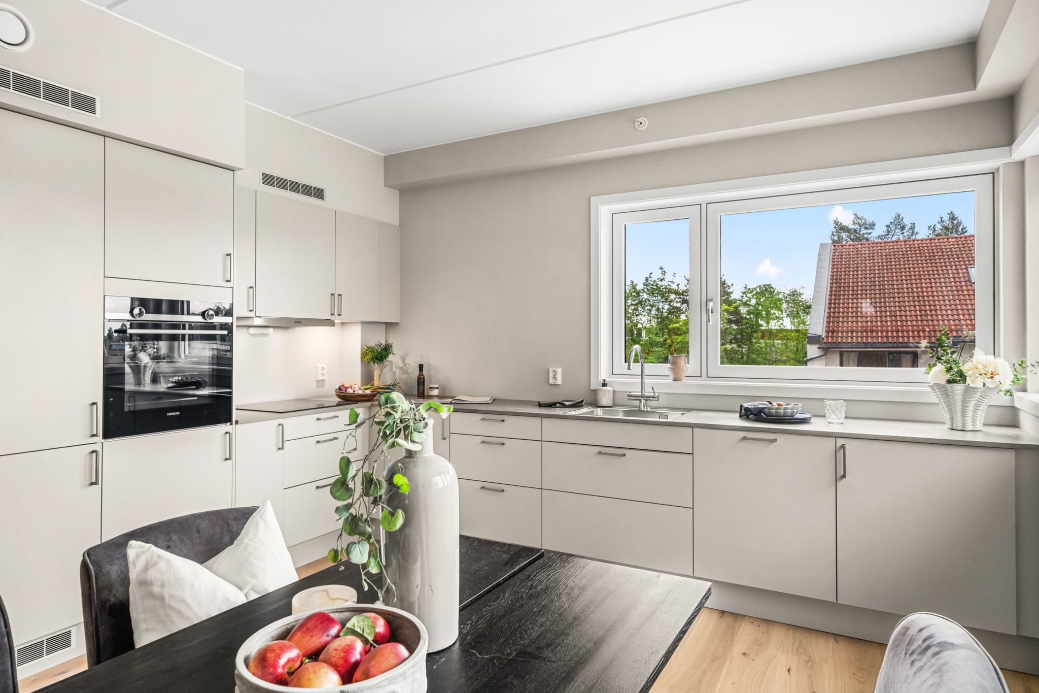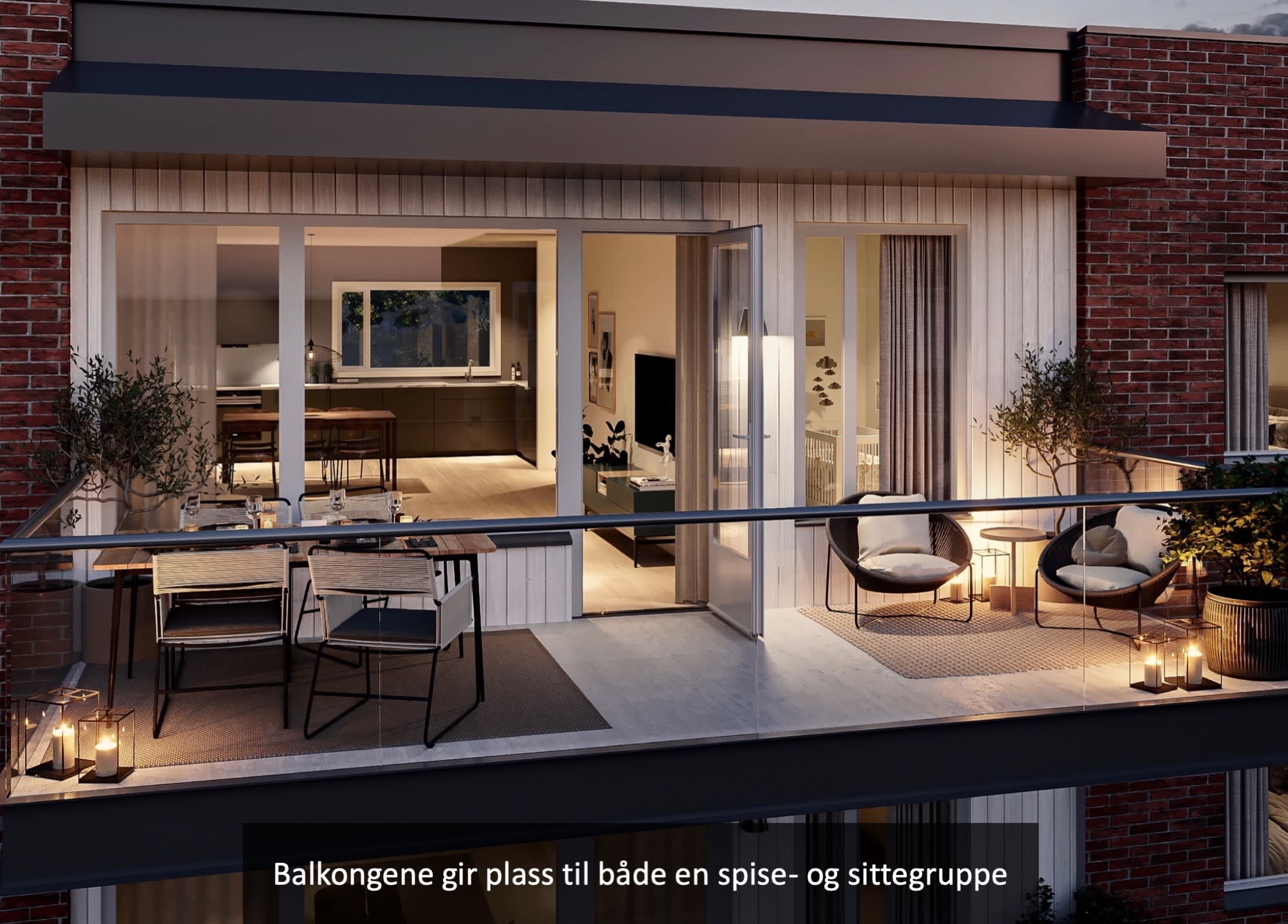 Attraktiv endeleilighet med lys fra tre sider og spesielt flott kjøkkensone. Denne leiligheten er som skapt for sammenkomster og sene middager. Stuen har direkte utgang til deilig balkong med utsyn til det grønne tunet. 2 store soverom hvorav ett med eget bad og garderobe.