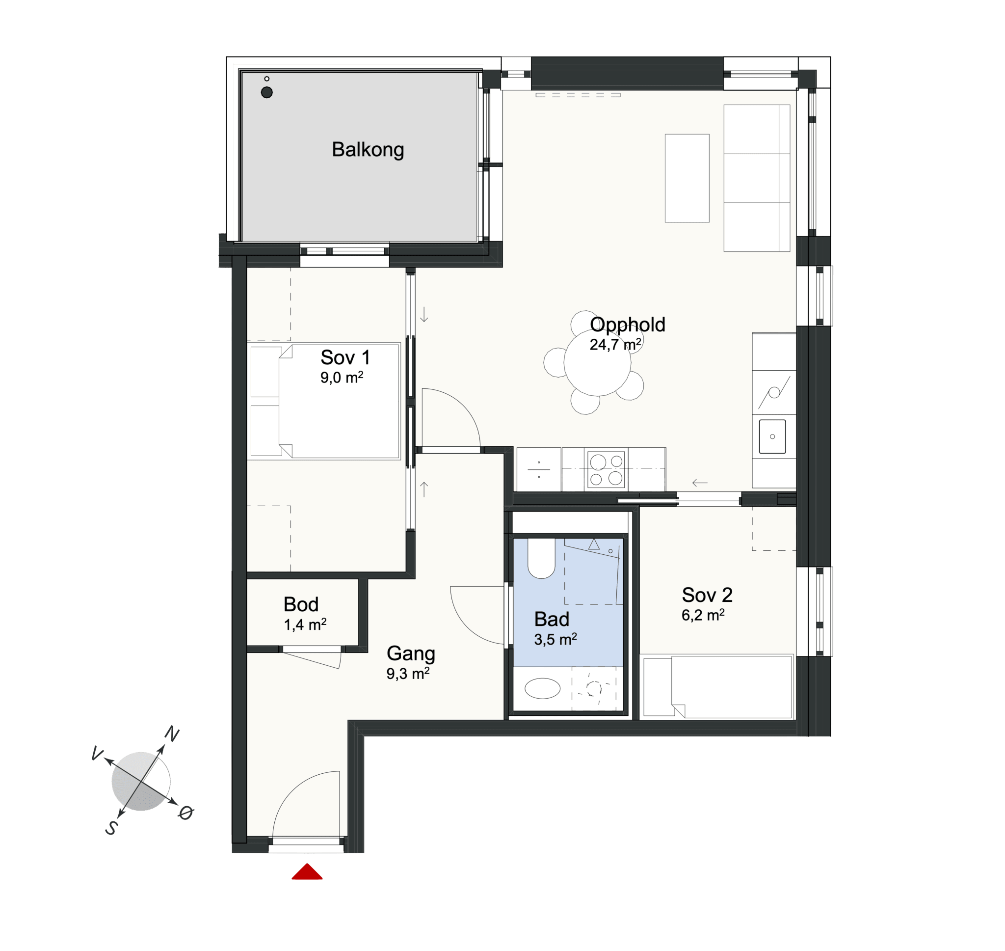 Samme lekre leilighet som de under, men med enda større vindusflater som gir ekstra romfølelse. Stuen her er spesiell fin med utsikt mot hyggelige Lilleholtet og direkte utgang til balkong vendt mot tunet. To fine soverom og lekkert kjøkken med stor spiseplass.