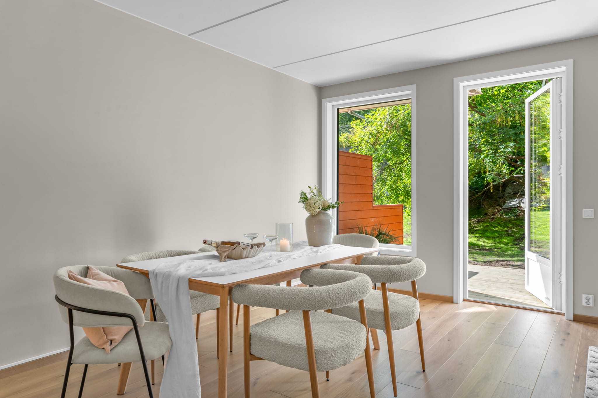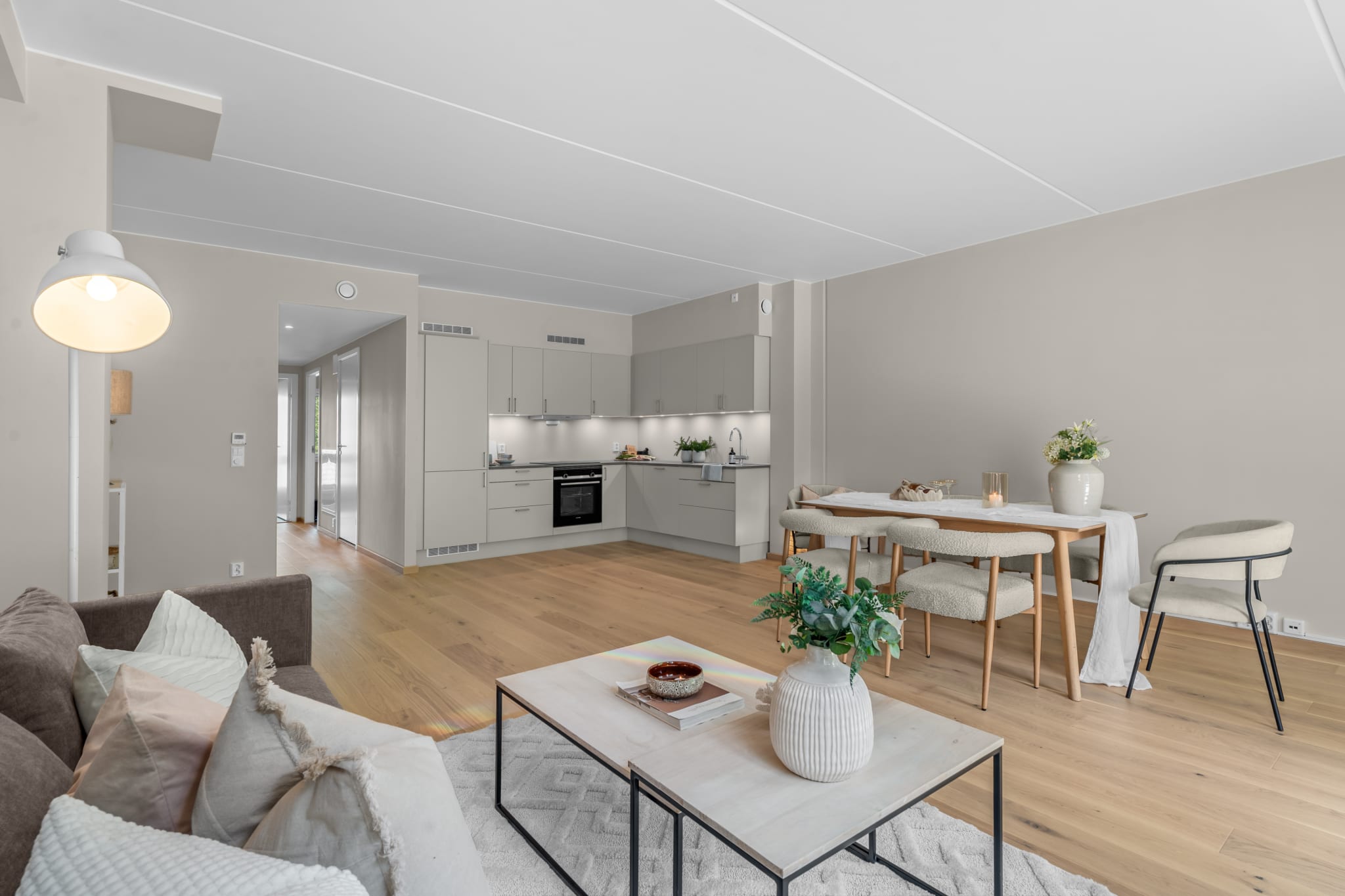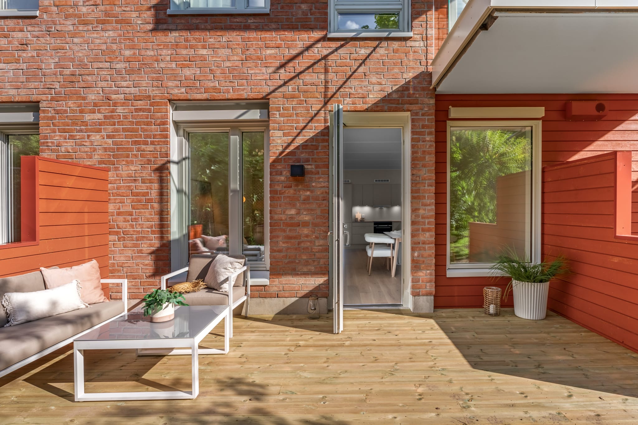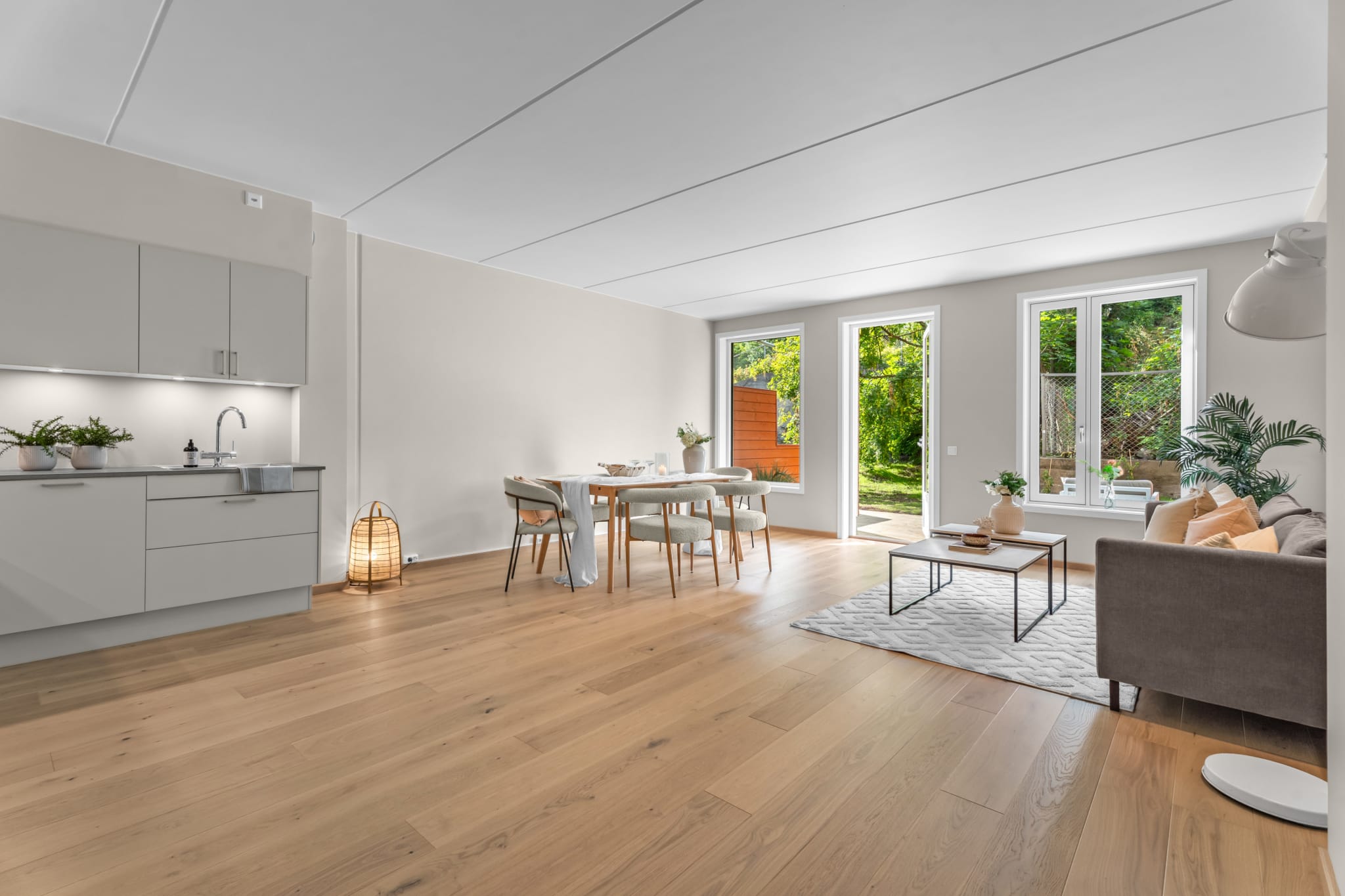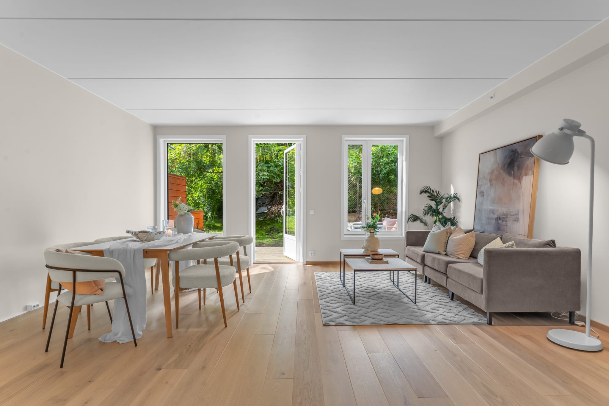 Rålekkert townhouse med Lilleholtet som nærmeste nabo. Noen trinn fra bakkeplan gjør uteplassen både privat og anvendelig. Med tre soverom og to romslige bad, passer denne leiligheten for dem som trenger litt god plass. Stuen er lys og lekker med utgang til terrasse.