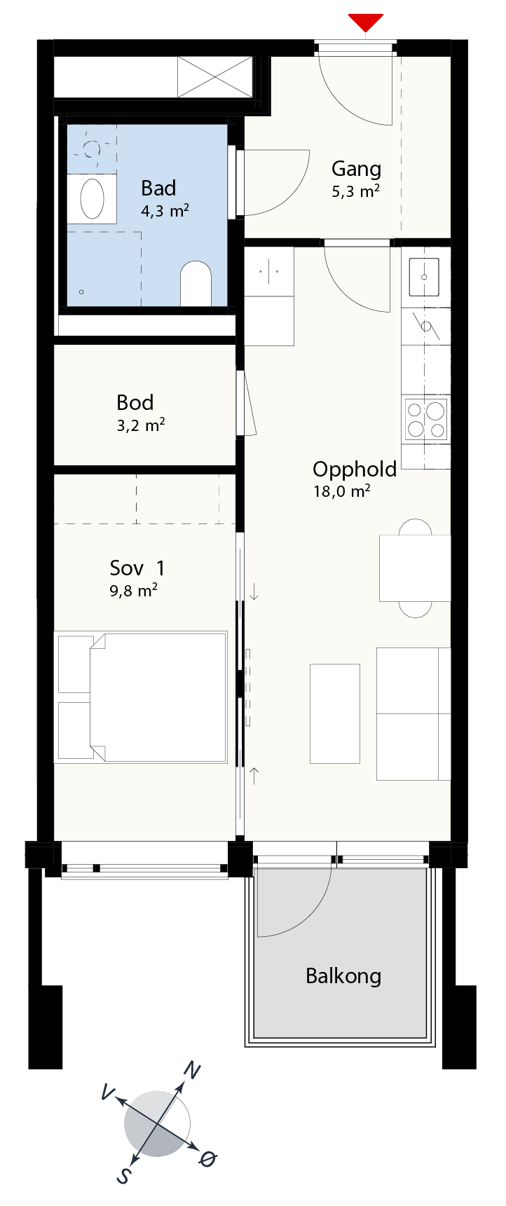 H201: Smart student- eller pendlerleilighet